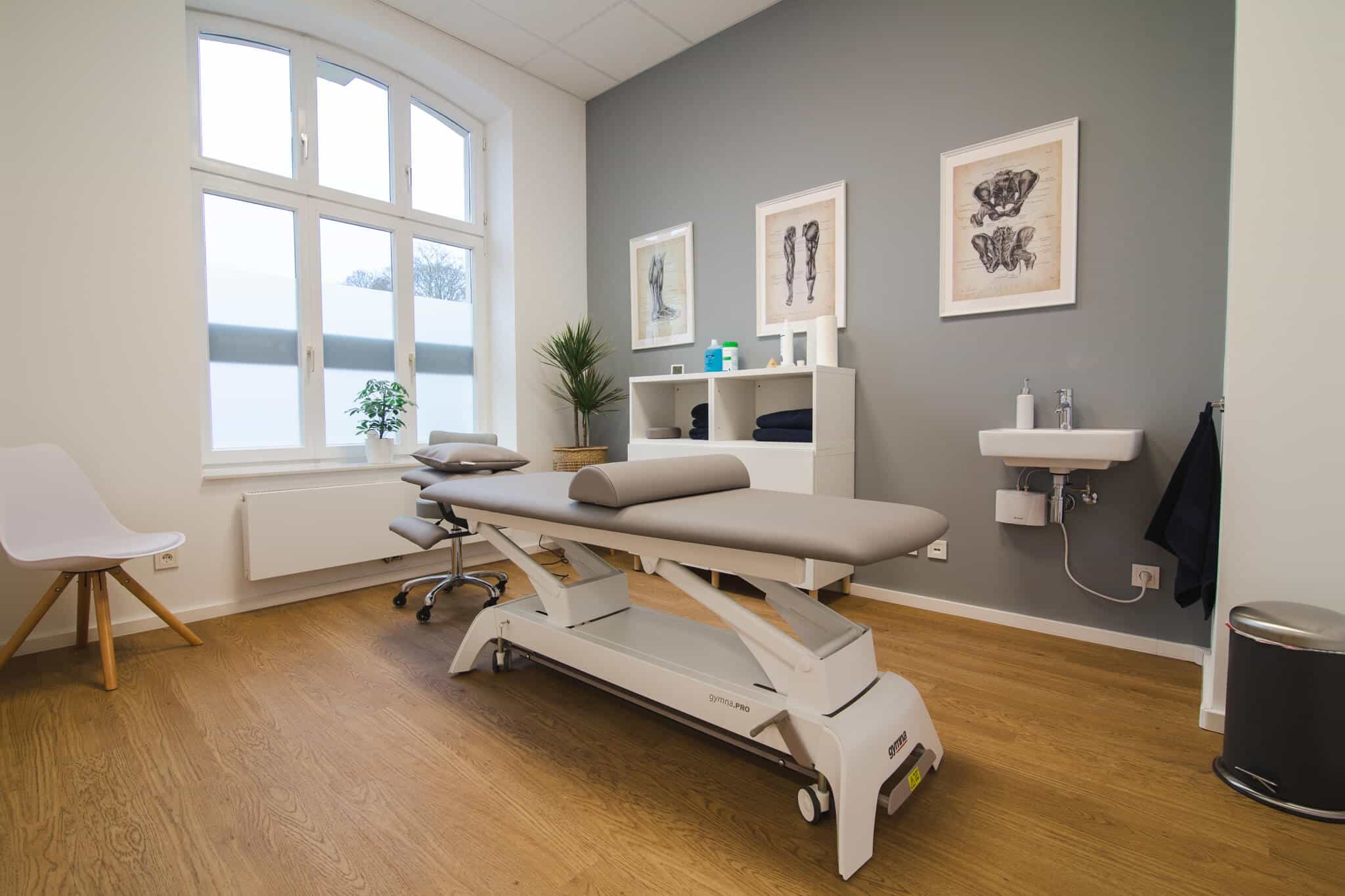 Über den freundlich einladenden Empfangs- und Wartebereich gelangst du in unsere großräumig und hellen mit Fenster ausgestatteten Behandlungsräume sowie einen 50 m2 großen Trainingsraum. Durch professionelle Behandlungsliegen, vielfältigem Behandlungsequipment (z.B. Schröpfgläser, Faszientools, Flossingbänder) sowie Trainingsgeräten können deine Beschwerden in angenehmer Praxisatmosphäre gelöst werden.